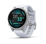 Garmin fenix 8 43mm AMOLED, ezüst, fehér szilikon szíjjal